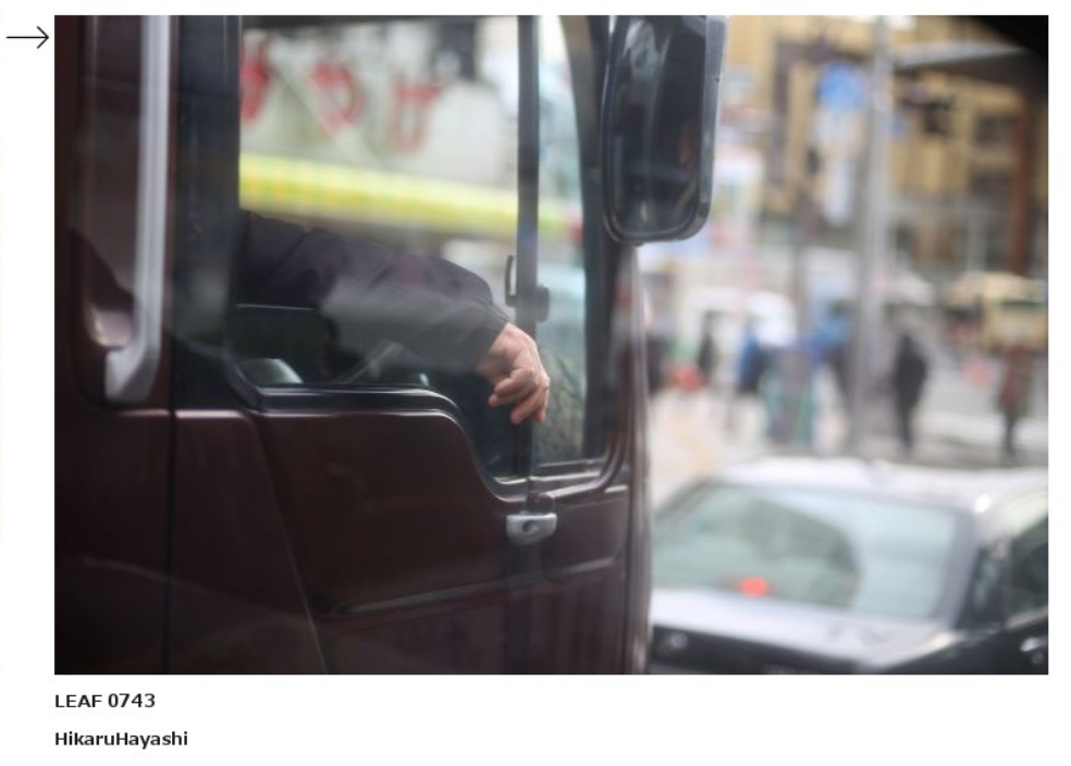 そしたら、このおばあちゃんをつけた人が、しおれた花の写真もつけてくれて。「もう役割は終わってしまった・・・」っていうタイトル。あ、おばあさん亡くなったのかなと思って、それに繋げる写真を探してたら、これがあって。僕はバスに乗ってたんですけど、信号待ちのとき、隣のトラックの運転手が、こう、何気なく手を外に出してるんですよ。